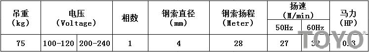 DU-75A迷你鋼索商場電動提升機規格: